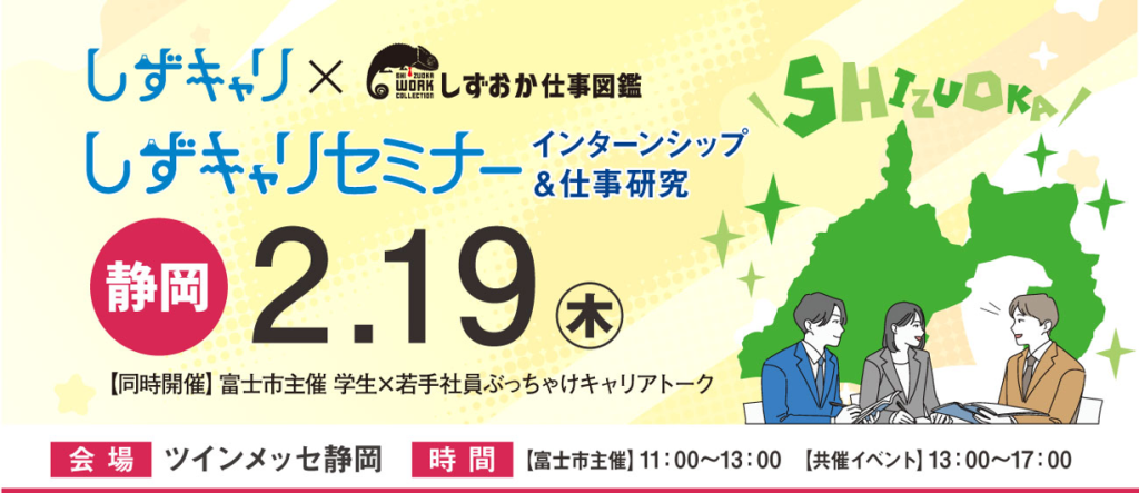 2026年2月19日(木)に、しずキャリ×しずおか仕事図鑑が共催するしずキャリセミナー インターンシップ&仕事研究が開催されます。