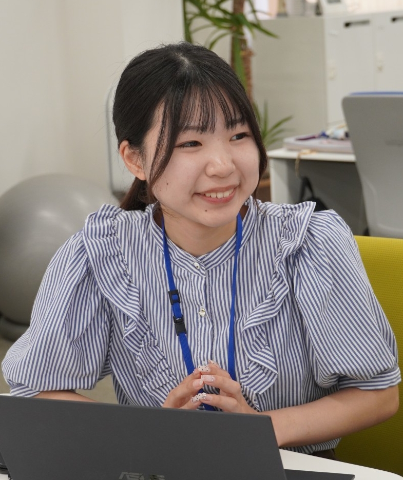 どんと構えてくれるのでとても安心感があり、私も様々なことに挑戦できています。落ち込んだ時は背中を押してくれる、とても素敵な先輩です!