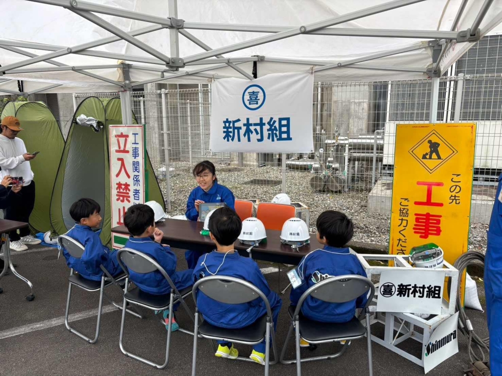 子どもたちに本物の仕事を体験してもらうため、イベント用に子ども用作業服を特別に用意しました。大人用をそのまま縮小した本格仕様で、袖を通した子どもたちは一気に職人の表情になりました。