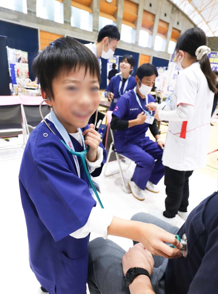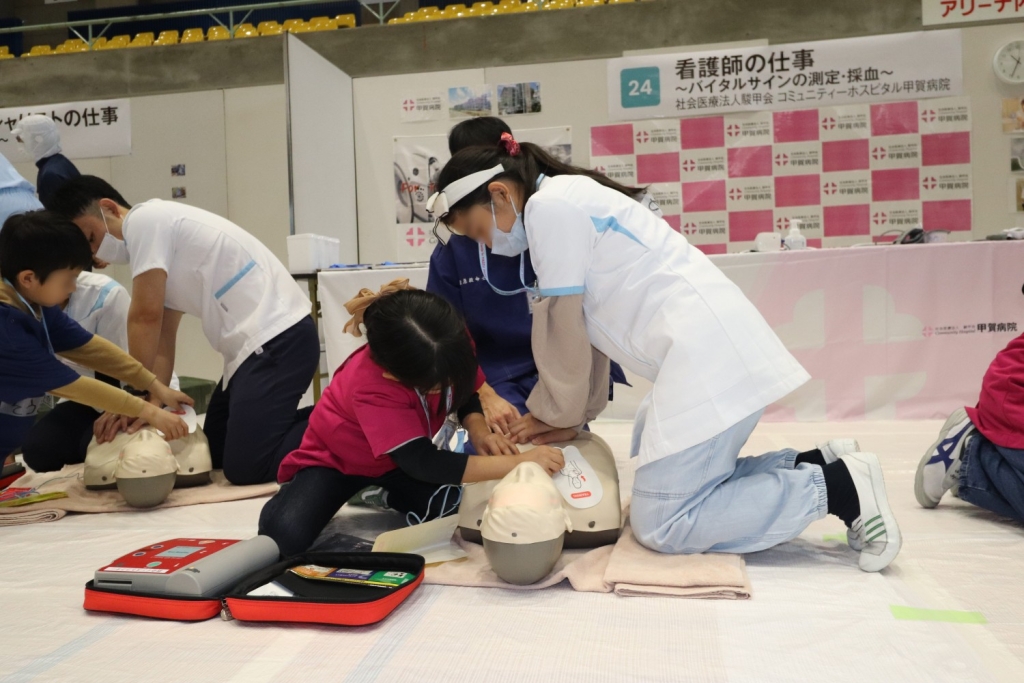 心肺蘇生やAEDの使用方法について学んだあと、看護師の仕事として、バイタルサインの測定や採血などの業務を行います。