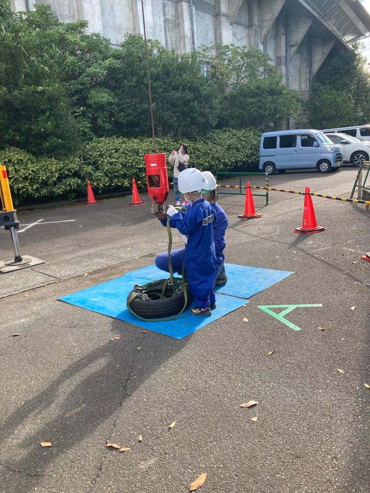 先輩運転手によるクレーン操縦のデモンストレーションを見学した後、指導員の補助のもと自分でクレーンを操縦します。