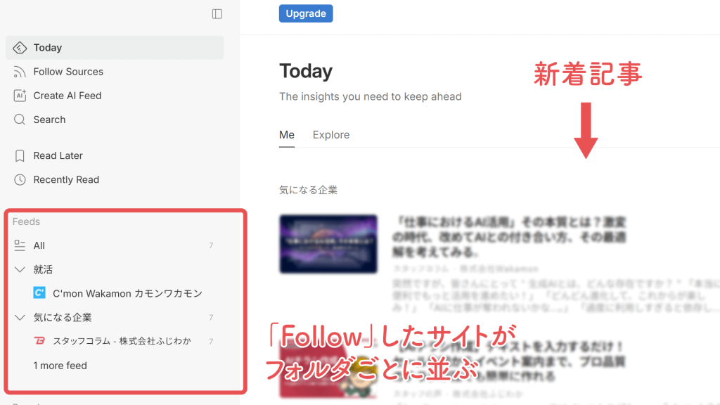 まずは、複数のWebサイトの更新情報をまとめてチェックできるRSSリーダーサービス*「Feedly(フィードリー)」です。お気に入りのWebサイト(ブログ、ニュースサイト、Webメディアなど)を登録しておくだけで、新着記事をまとめてチェックできます。