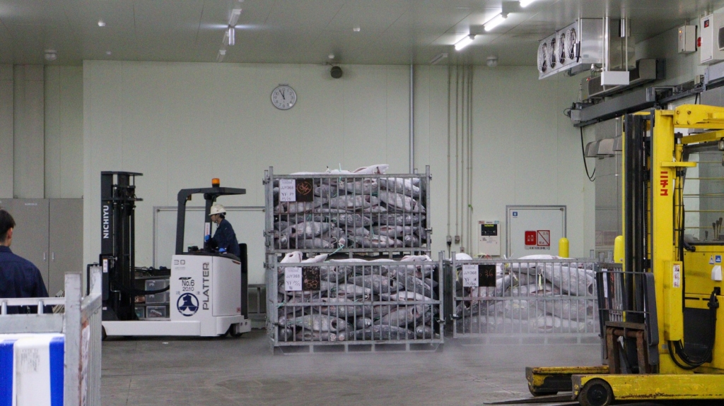 本社隣にある工場では、マイナス60℃の超低温冷蔵庫があります。収容量はなんと4,000トン。2018年に水産食品加工施設HACCP認定を取得しており、国際的な衛生管理基準に準拠した運用を行っています。超低温環境下での保管によって、魚の品質を長期間安定して維持でき、全国へ供給できるのです。