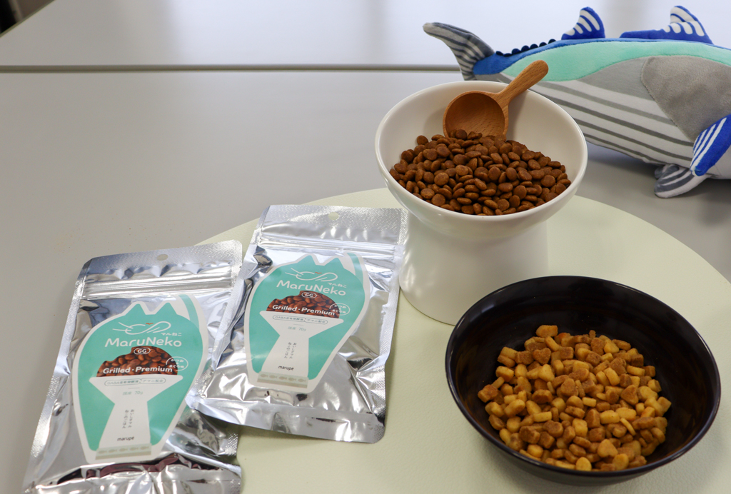 鰹節やまぐろなど焼津らしい魚素材を生かし、調味料の開発や2003年にはペットフード事業を開始。